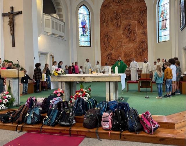 V neděli 3. září požehnal otec Jeroným školákům do jejich nového školního roku. Při mši svaté proběhla také katecheze pro děti a po mši setkání s rodiči ohledně výuky náboženství. Přejeme všem dětem požehnaný nový školní rok a všem učitelům moudrost Ducha Svatého! Za fotky děkujeme Ondrovi.